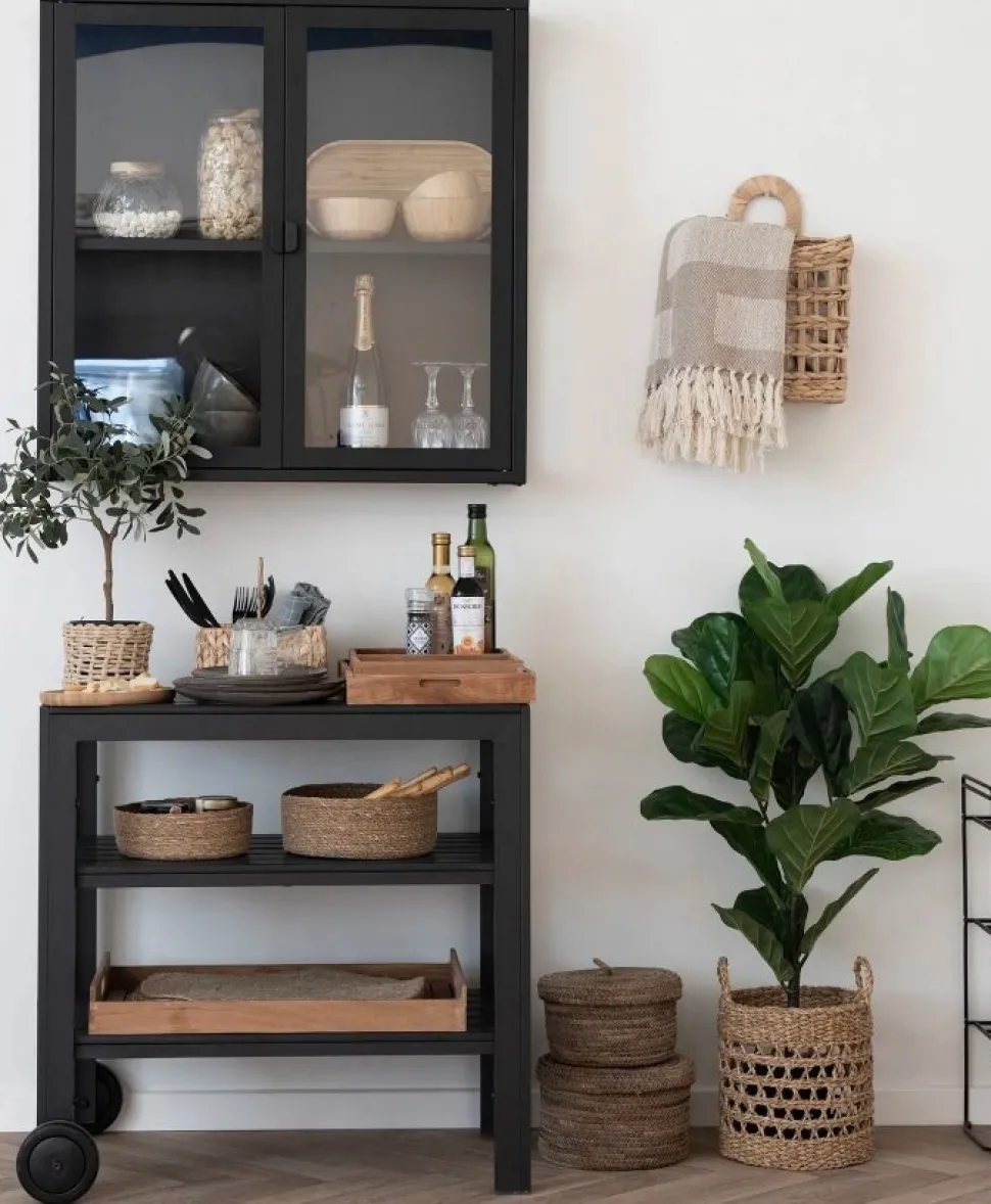 Serveringsvagn av nonwood och svartlackad aluminium. Levereras omonterad.