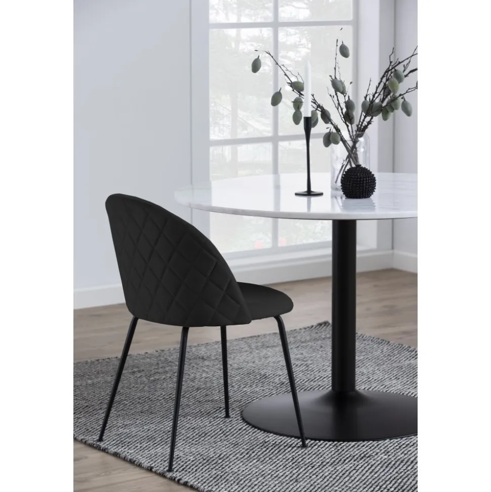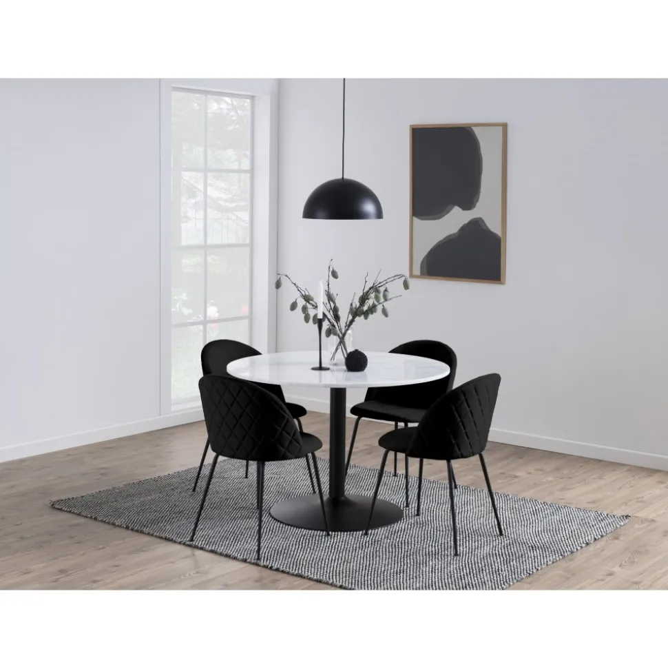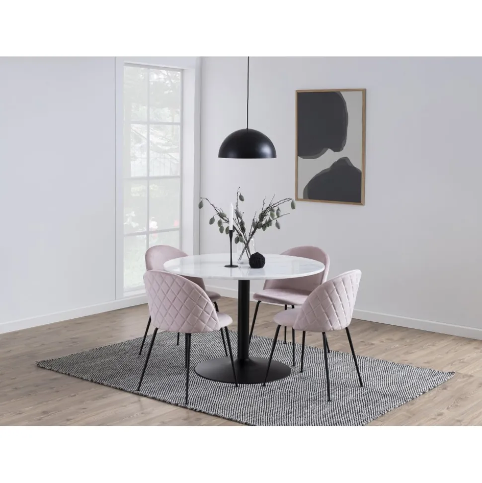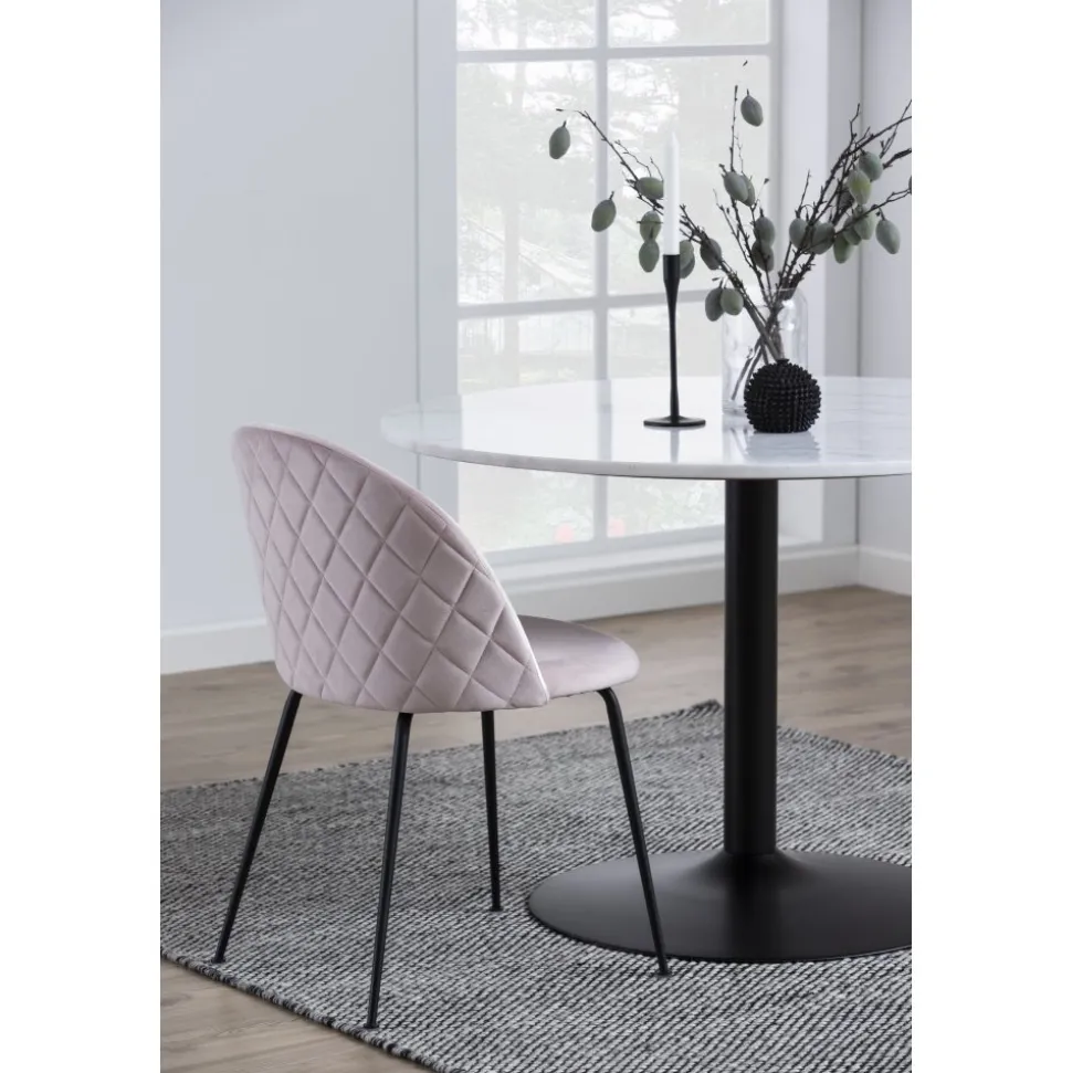 Matbord med ben av pulverlackerad metall. Bordsskiva av polerad marmor.
