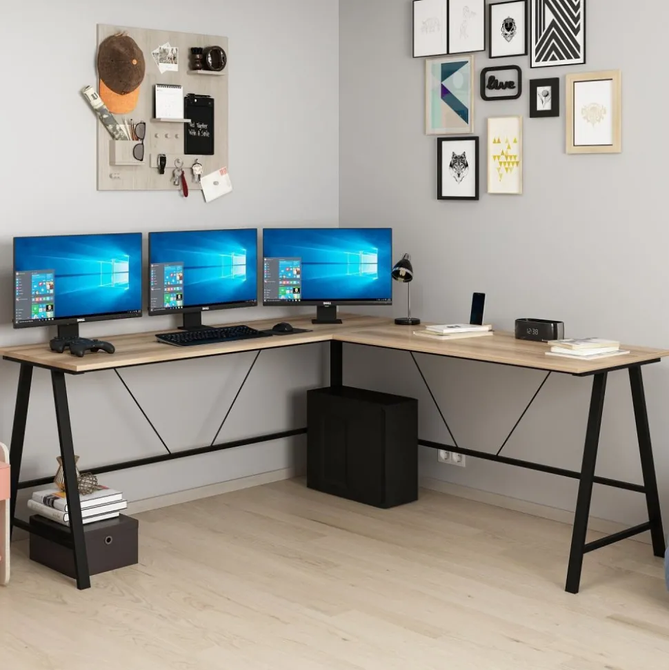 Skrivbord av melaminbelagd spånskiva.