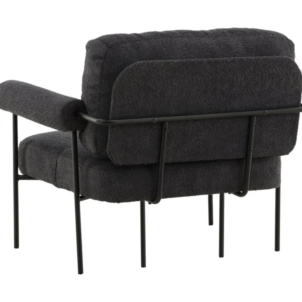 Fåtölj som höjer mysfaktorn i vardagsrummet. Den generösa sitsen tillsammans med det mjuka ryggstödet och rundade armstöden skapar en bekvämlighet utöver det vanliga. Fåtöljen är klädd i ett grått boucletyg och har ben av svart stål. Placera intill soffgruppen eller varför inte ensam som en vacker inredningsdetalj. De nordiska formerna och nostalgiska designen skapar ett härligt blickfång i alla rum och är lätt att matcha med övrig inredning.
