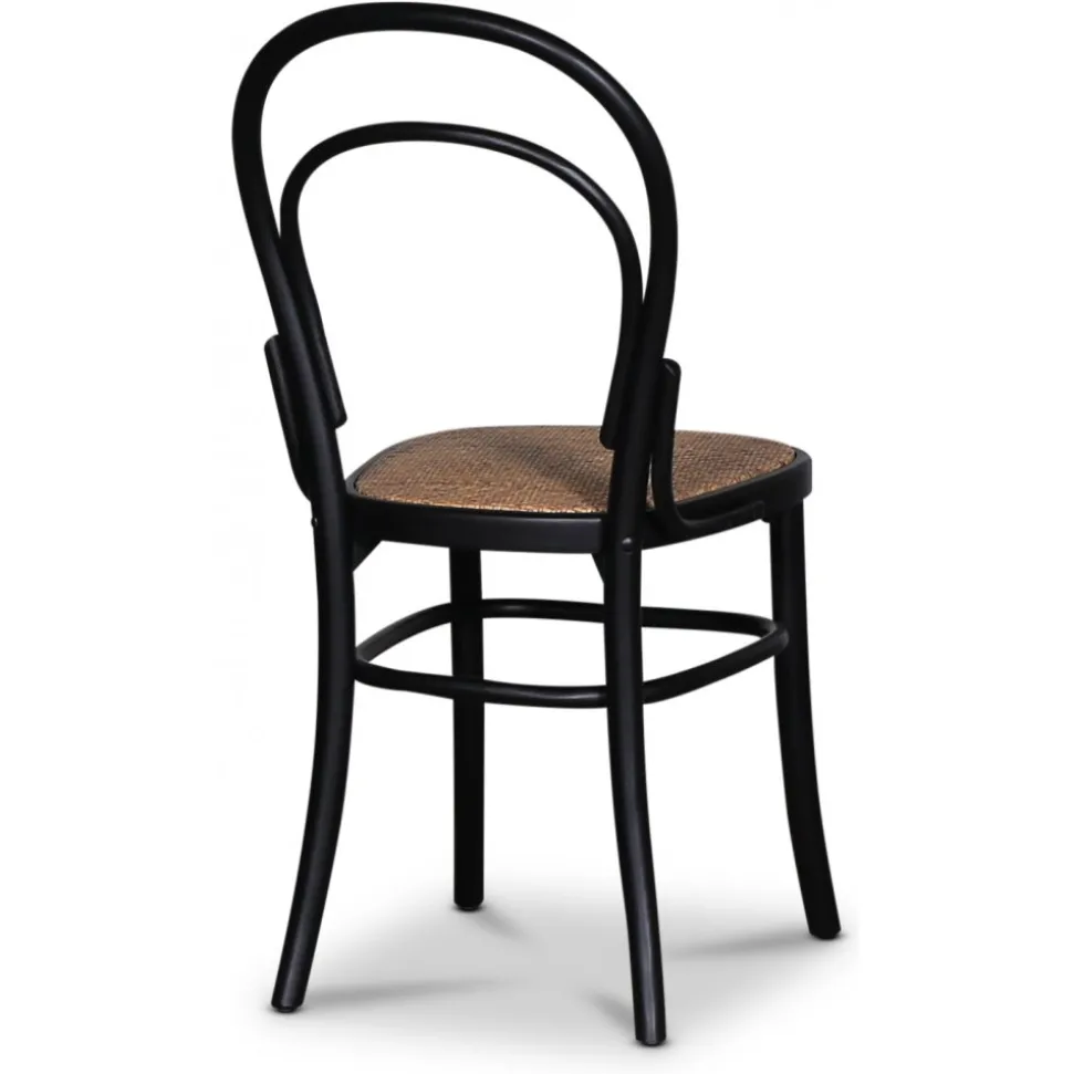 Tona-stolen med sin svarta böjträstruktur av bok och sits av rotting kombinerar tidlös elegans med en modern känsla. Den klassiska designen gör den mångsidig och anpassningsbar, vilket gör att den passar perfekt både vid moderna matbord och mer traditionella bordsstilar.