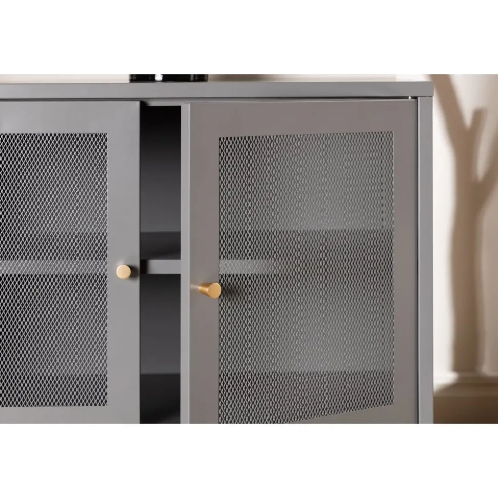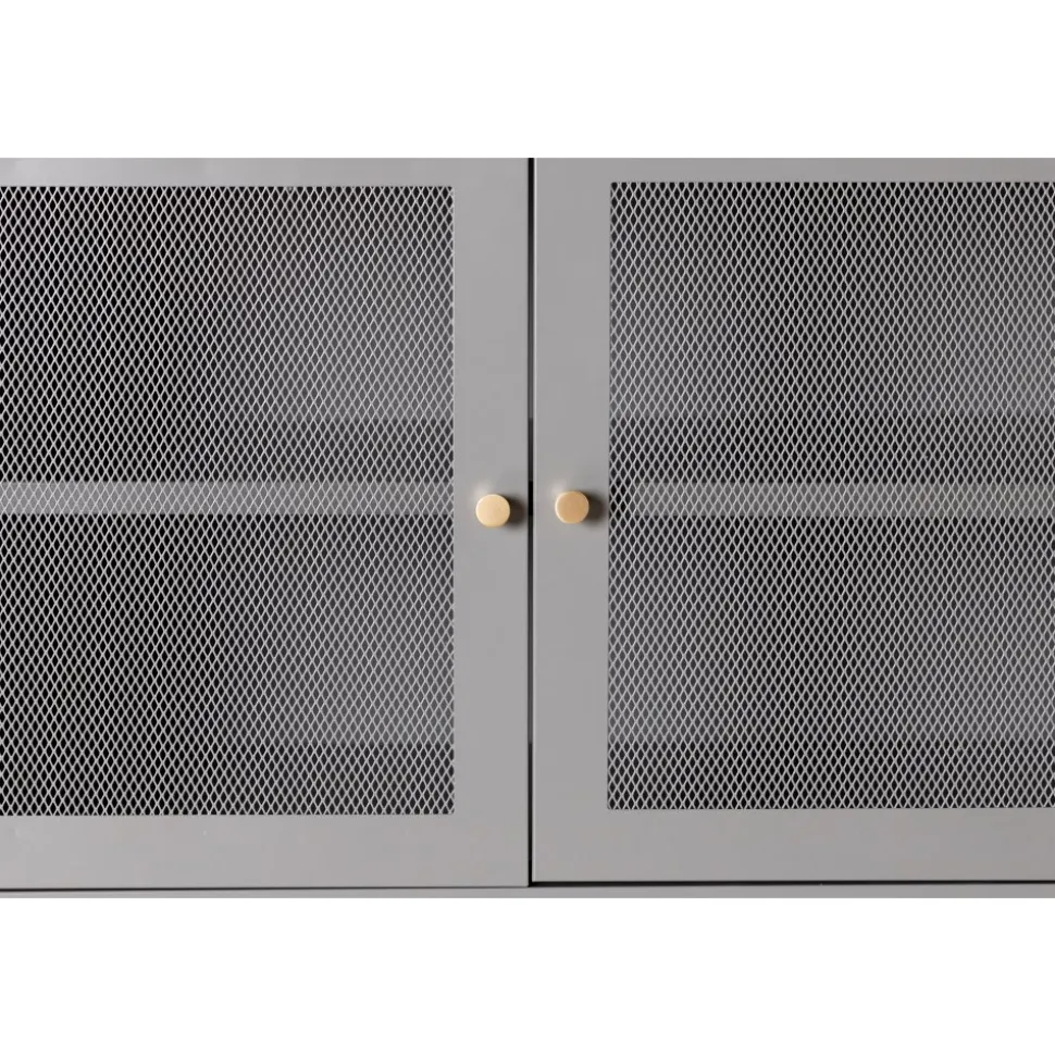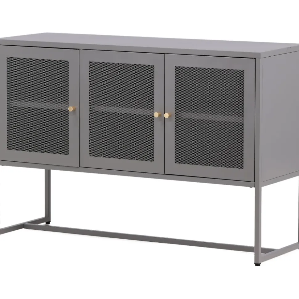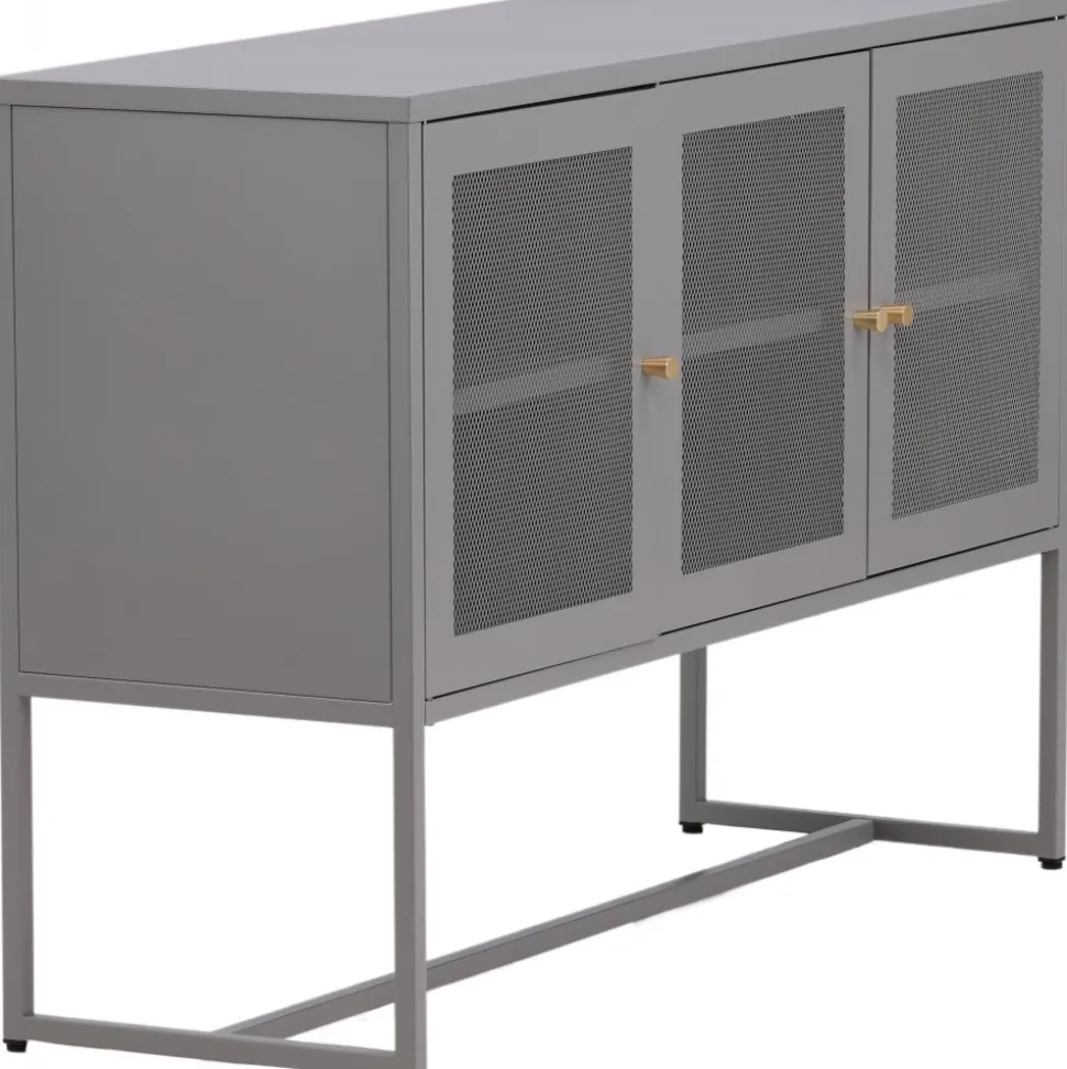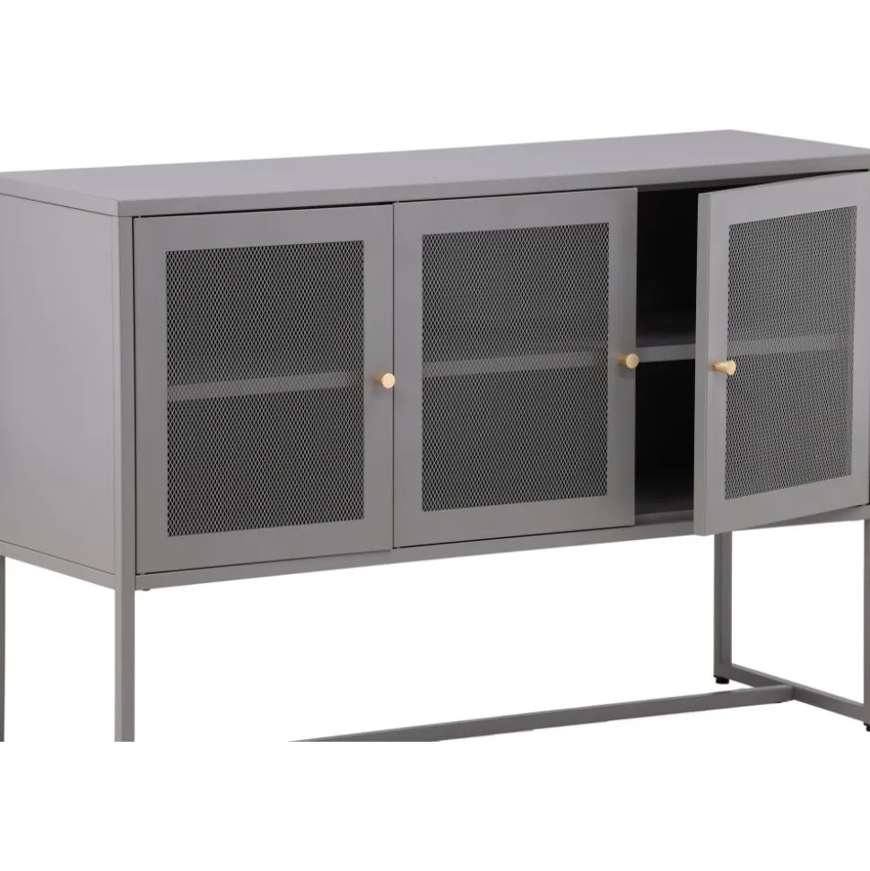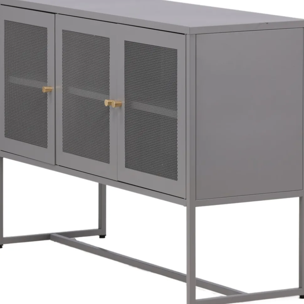 Trerike – ett modernt skåp i en tuff industriell design med läckra nätdörrar och ben tillverkade i grått pulverlackerad stål med 2 smarta hyllplan för avlastning. Skåpet lyfts upp av smala, höga ben som skapar en luftig känsla och underlättar även för dammsugaren. Den perfekta förvaringsmöbeln för allt du önskar – fyll med porslin, böcker eller vackra dekorationer. Skåpets smidiga storlek och eleganta utsida gör den lättplacerad och passar bra in i de flesta rum i hemmet, så möblera efter egna behov och önskemål.
