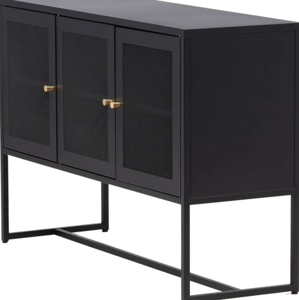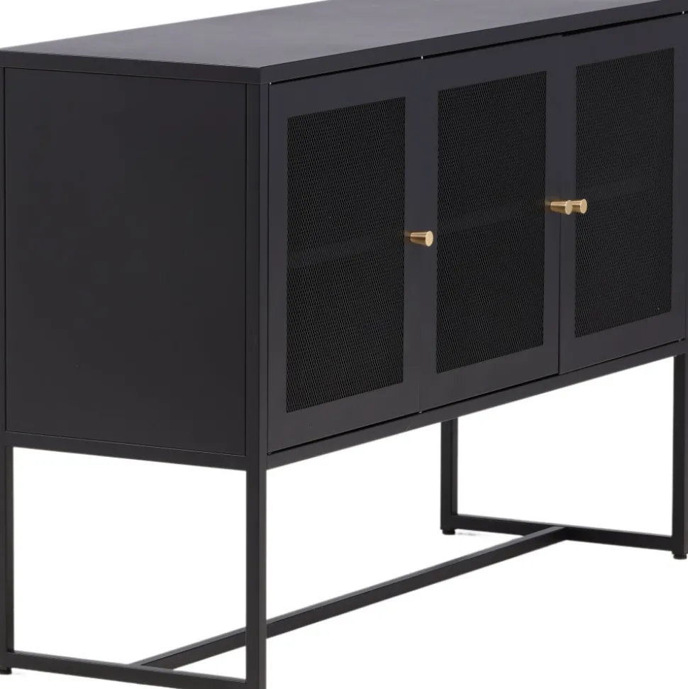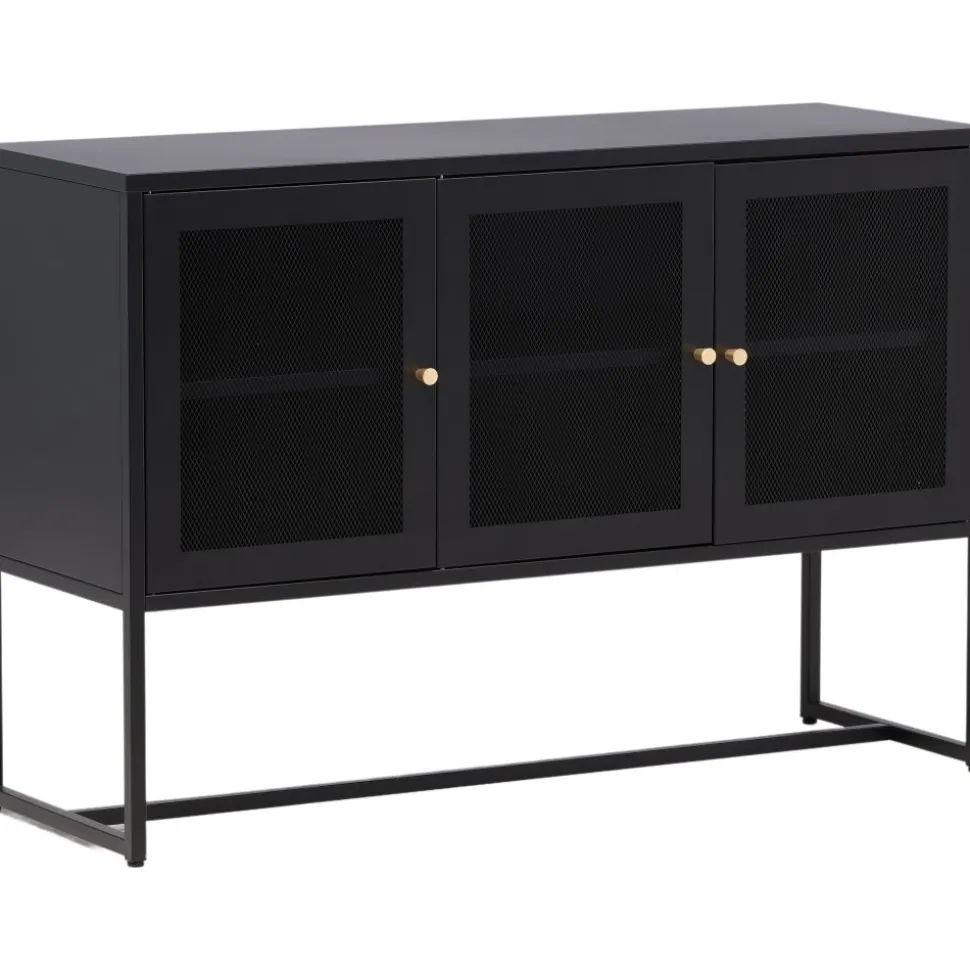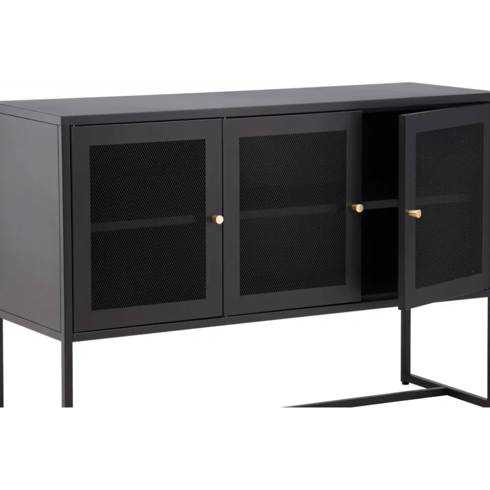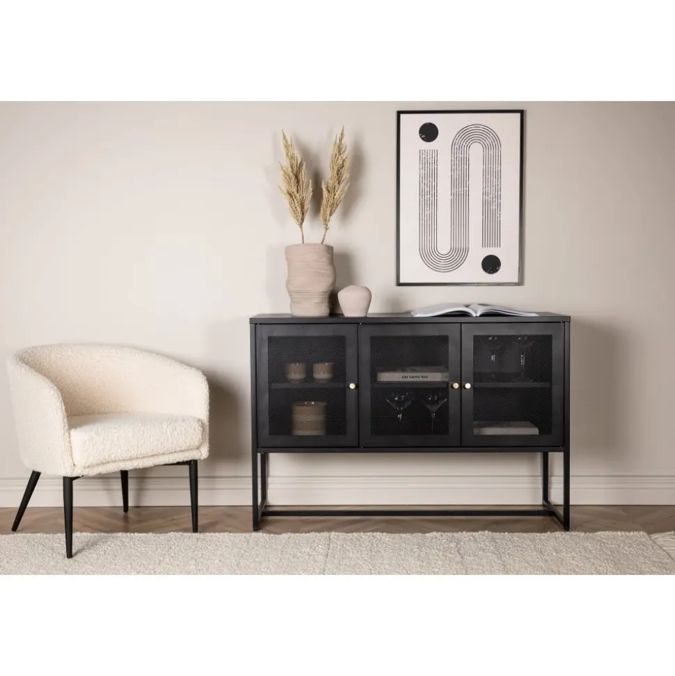 Trerike – ett modernt skåp i en tuff industriell design med läckra nätdörrar och ben tillverkade i svart pulverlackerad stål med 2 smarta hyllplan för avlastning. Skåpet lyfts upp av smala, höga ben som skapar en luftig känsla och underlättar även för dammsugaren. Den perfekta förvaringsmöbeln för allt du önskar – fyll med porslin, böcker eller vackra dekorationer. Skåpets smidiga storlek och eleganta utsida gör den lättplacerad och passar bra in i de flesta rum i hemmet, så möblera efter egna behov och önskemål.