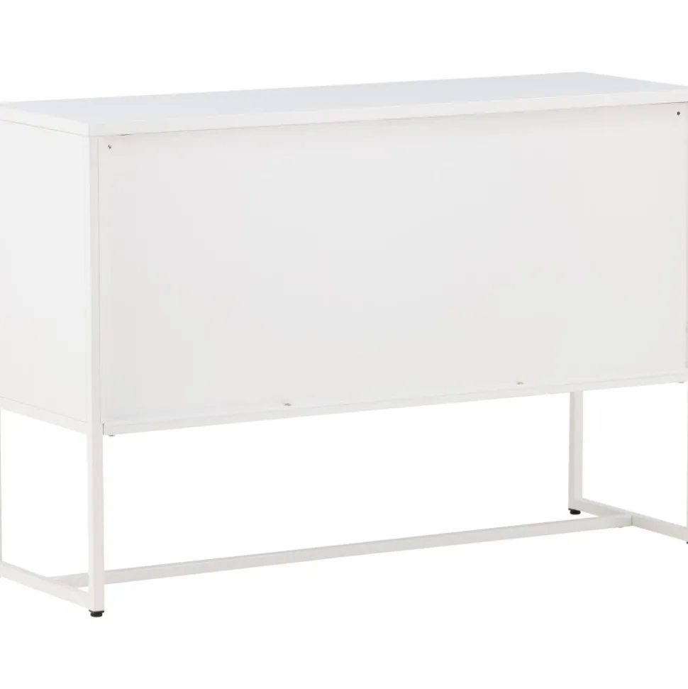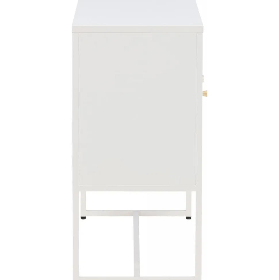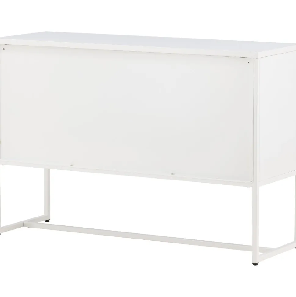 Trerike – ett modernt skåp i en tuff industriell design med läckra nätdörrar och ben tillverkade i vit pulverlackerad stål med 2 smarta hyllplan för avlastning. Skåpet lyfts upp av smala, höga ben som skapar en luftig känsla och underlättar även för dammsugaren. Den perfekta förvaringsmöbeln för allt du önskar – fyll med porslin, böcker eller vackra dekorationer. Skåpets smidiga storlek och eleganta utsida gör den lättplacerad och passar bra in i de flesta rum i hemmet, så möblera efter egna behov och önskemål.