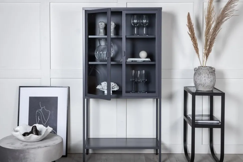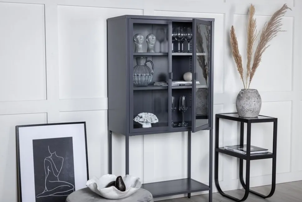 Tysslinge är en serie helt i metall i varierande färg och storlek. Utrustade med glasade dörrar och generös höjd på ben. Skåpen är pulverlackerade för en fin och hållbar ytbeläggning.