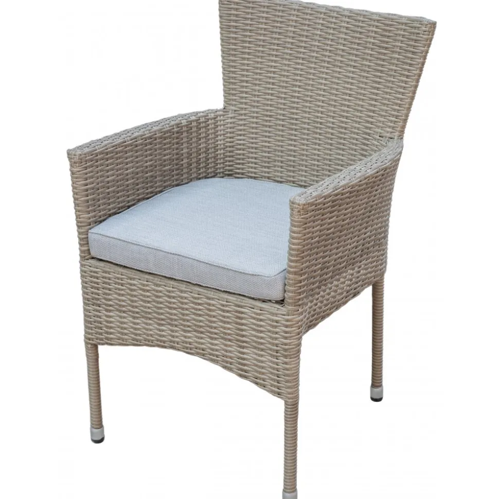 Tor är en praktisk uteserie bestående av olika bord och matstolar till uteplatsen eller till orangeriet. Tor utefåtölj i natrufärgad konstrotting inklusive en 5 cm hög beige dyna.