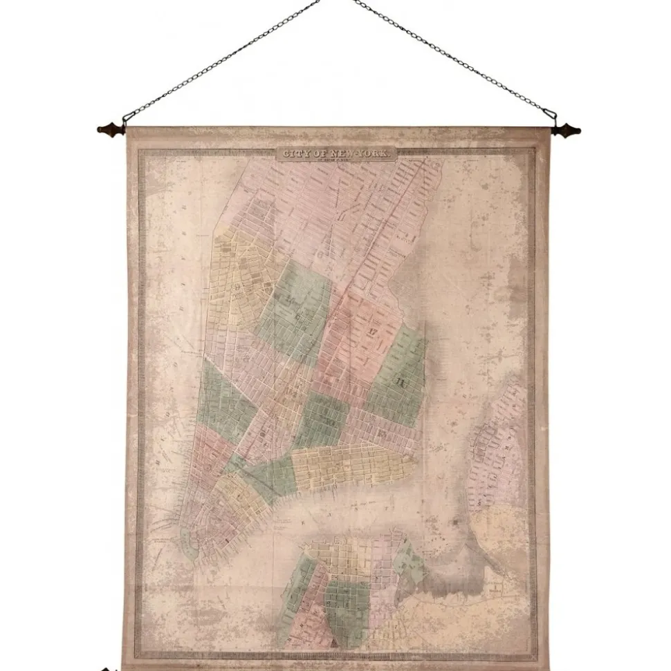 En stor och vacker väggdekoration med stadskarta över New York som motiv. Tillverkad på canvas som är fäst i två träramar och rullas ut till en tavla.