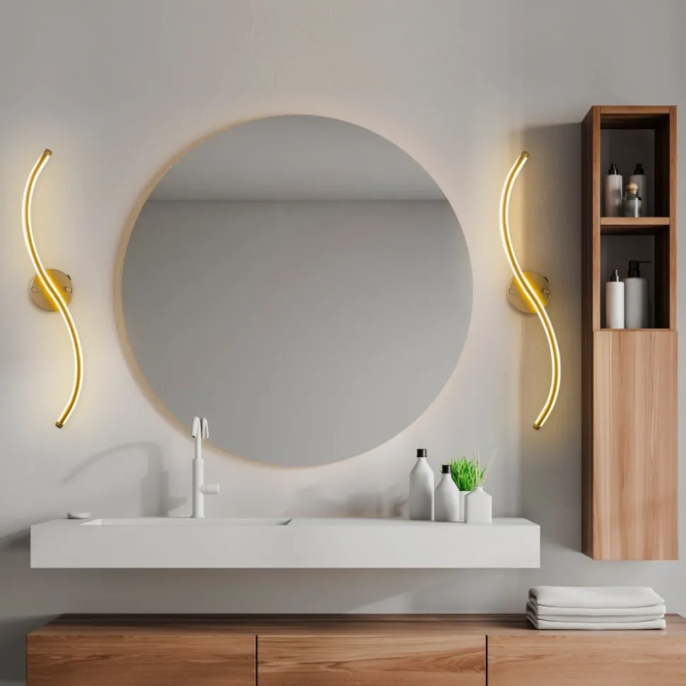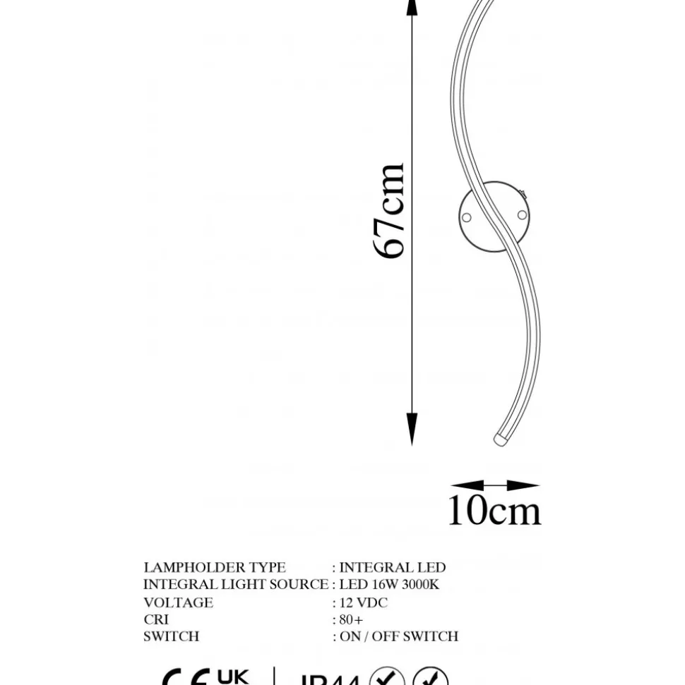 Vägglampa av metall. Ljuskällan är integrerad i lampan och kan inte bytas ut.