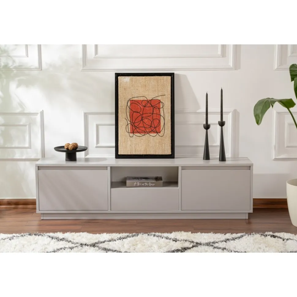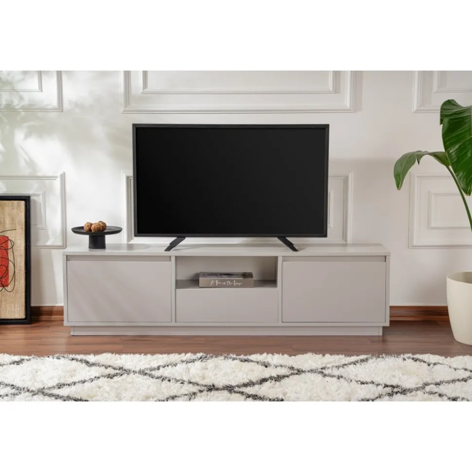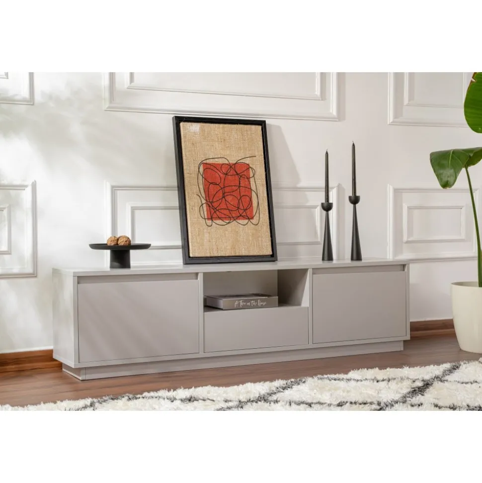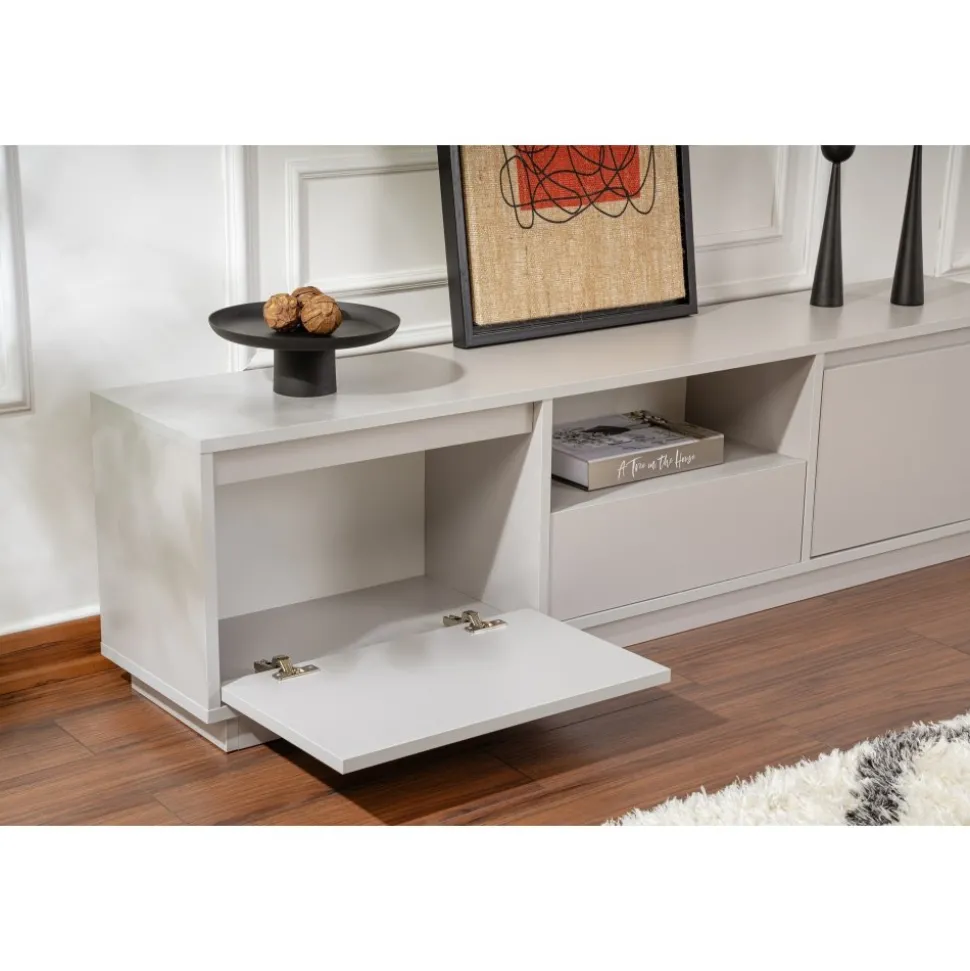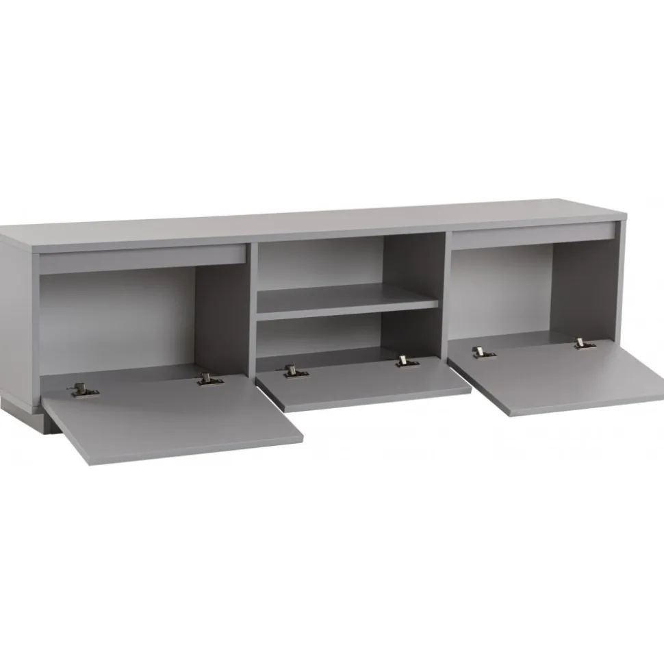 Mediabänk av melaminbelagd spånskiva.