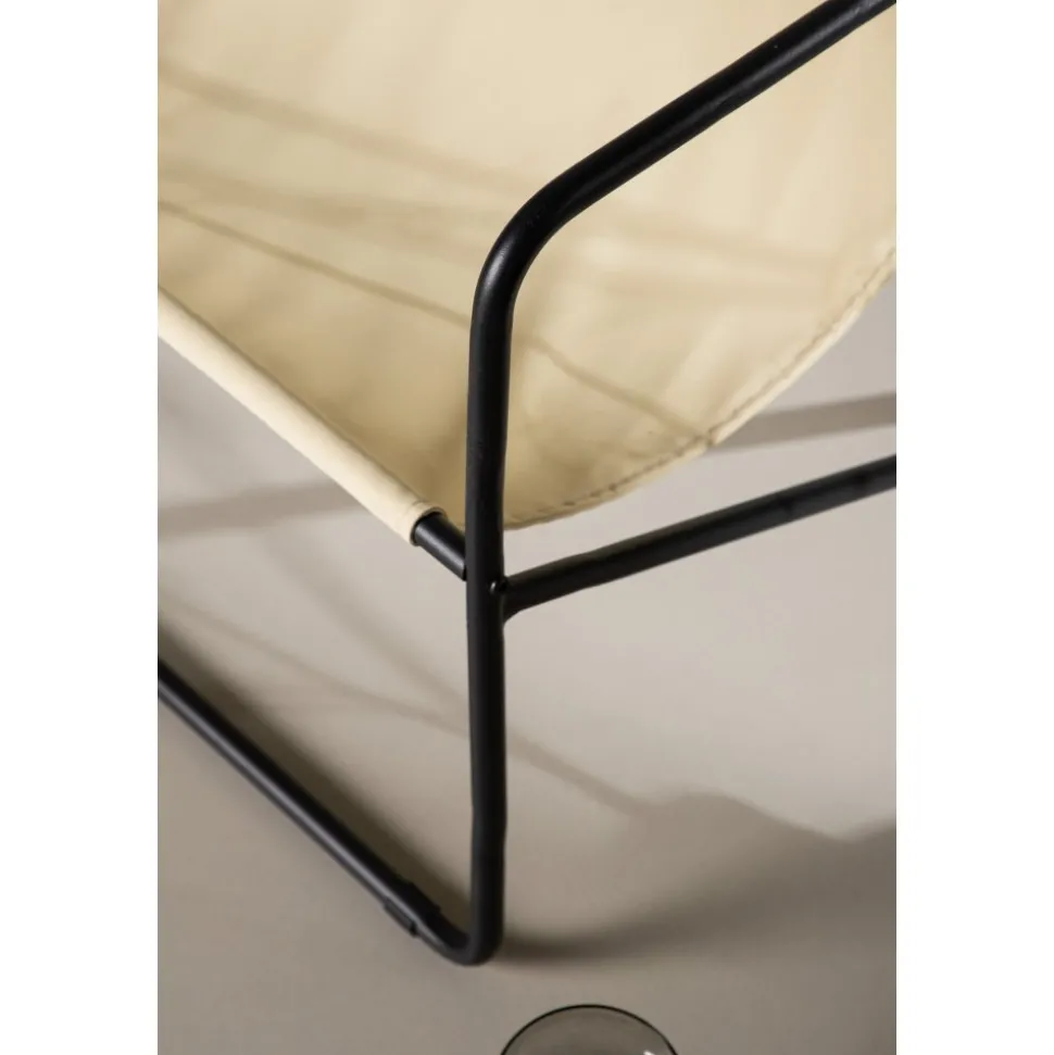 Inred ditt hem stilsäkert och inbjudande med trendiga sittplatser till dig och dina gäster! Den här fåtöljen fungerar utmärkt som en sidostol intill soffgruppen eller solitär som stilikon. Tillverkad i en minimalistisk stålkonstruktion i svart kulör med en beige tygsits i fleece. Designen är inspirerad av en klassisk solstol och har ett avkopplande inflytande på atmosfären i hemmet! Levereras omonterad.