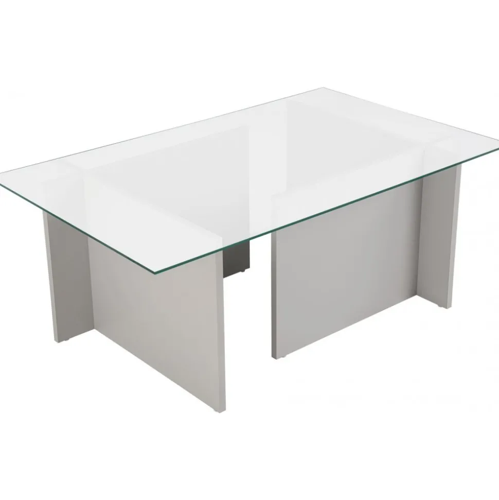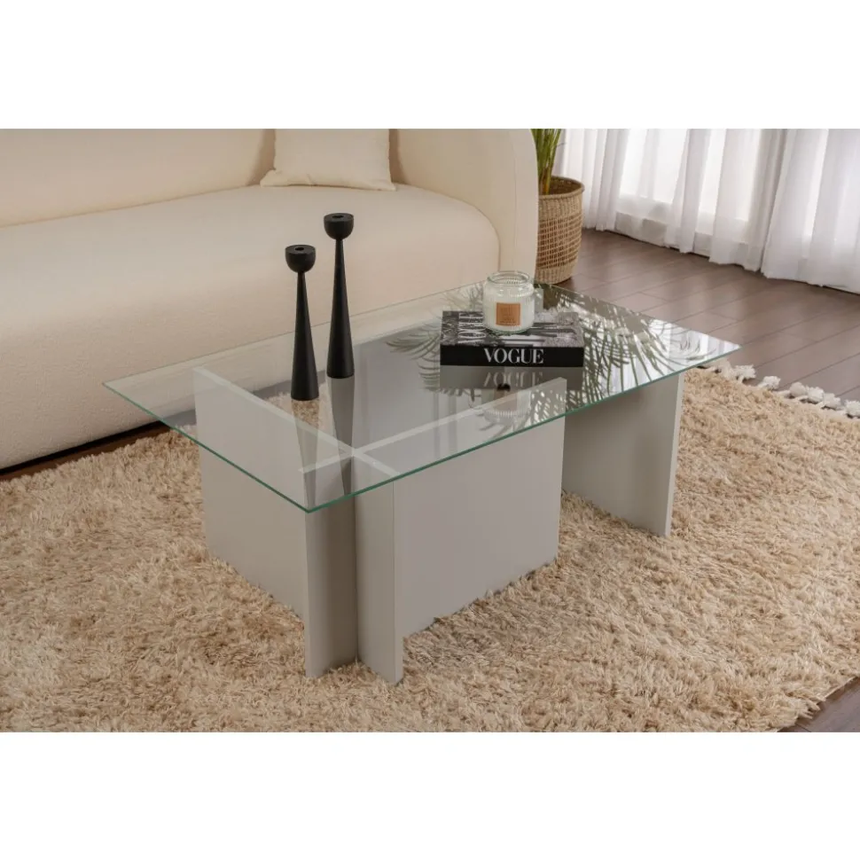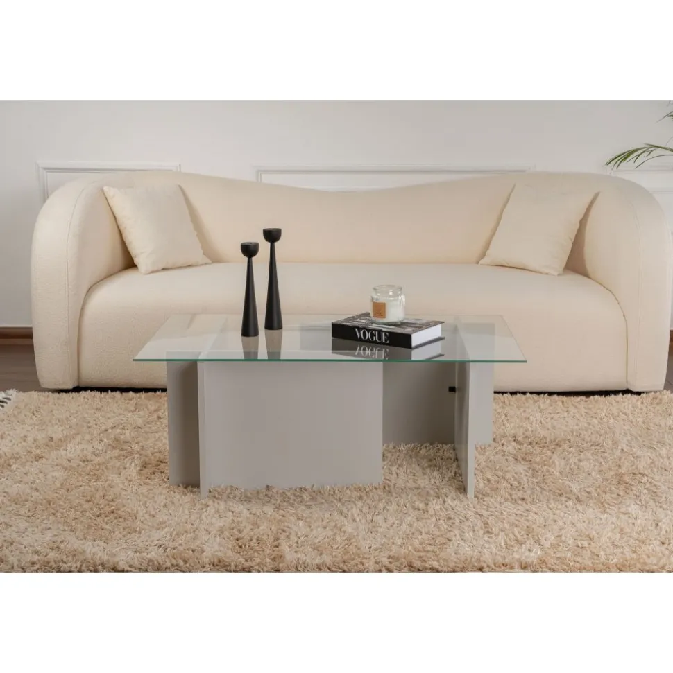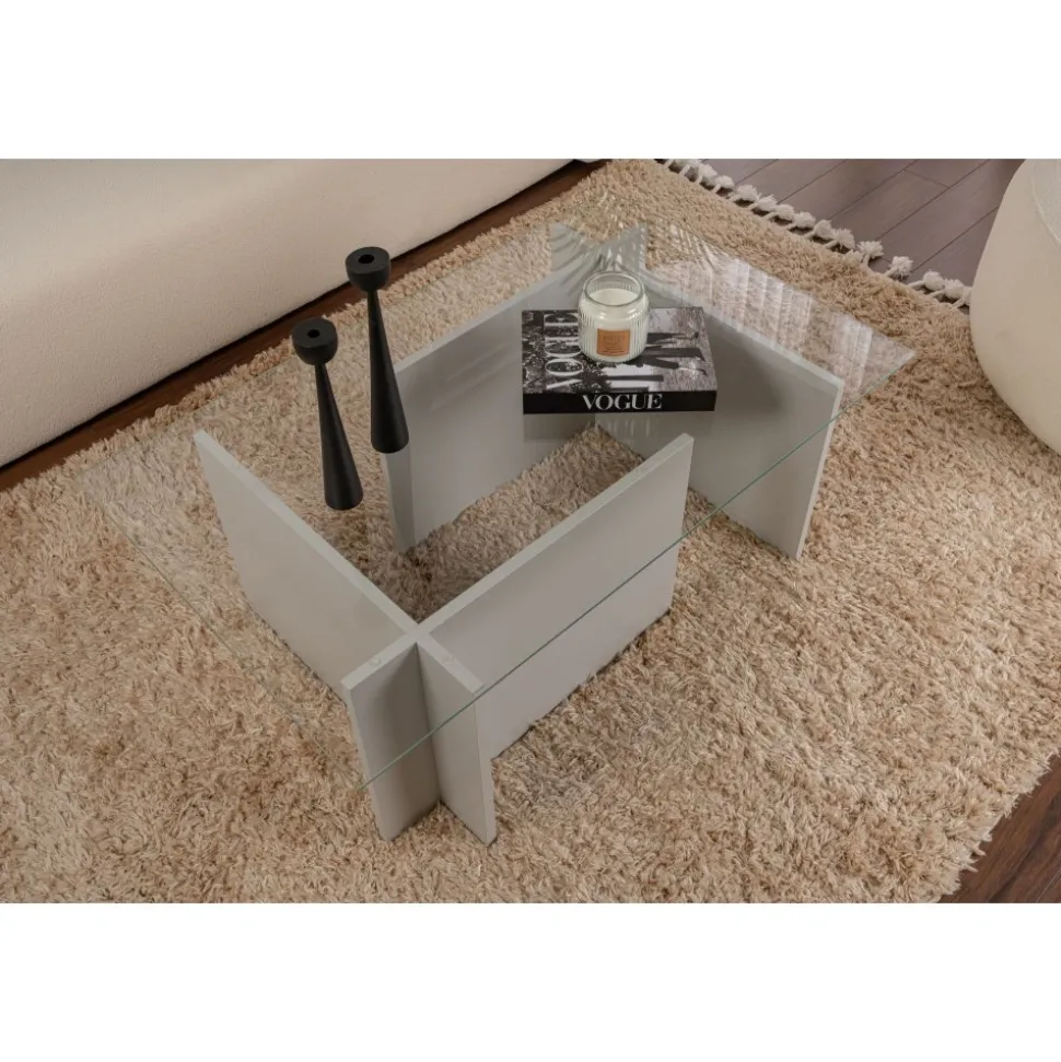 Vi presenterar vårt fantastiska grå soffbord, en möbel som kommer att lyfta stilen i alla med sin eleganta och moderna design. Detta är tillverkat av härdat glas och utstrålar sofistikering och elegans, vilket gör det till den perfekta mittpunkten i ditt hem.