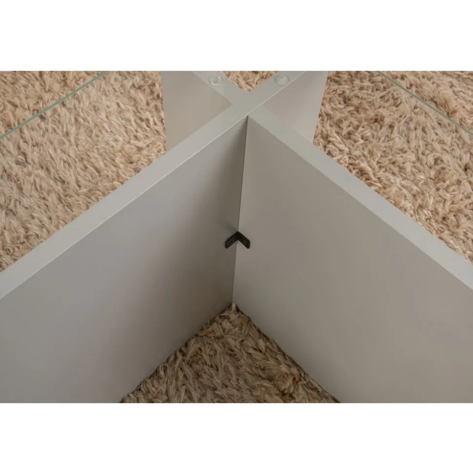 - Material: Toppskiva i härdat glas med en ram av melaminbelagd spånskiva