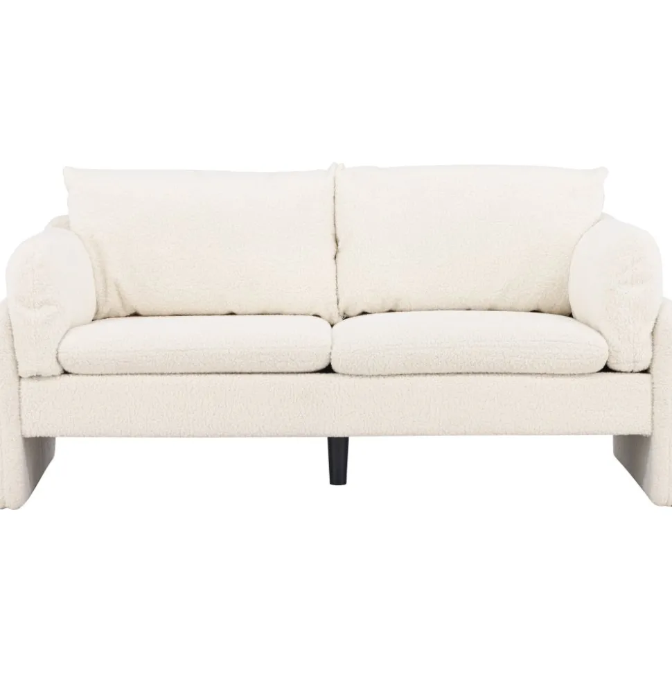 Häng med i trenderna med hjälp av vår underbara, vita teddysoffa från serien Vindel! Den här lyxiga designen, mjuka formerna och varma kulören ger dig en fräsch och stilren som står sig över tid. Soffan har raka nordiska former och en helklädd design som verkligen bjuder in för mysiga stunder när du behöver lite avkoppling. Det vita teddytyget är inte så märkvärdigt att hålla fräscht som man kanske tror – följ våra skötselråd för bästa tipsen. Soffan har inga ben utan bärs istället upp av stommen för soffan, vilket ger ett genomtänkt blickfång. Möblera vardagsrummet charmigt och skapa en varm atmosfär i ditt hem. Här får du en soffdröm utan dess like! Levereras omonterad.