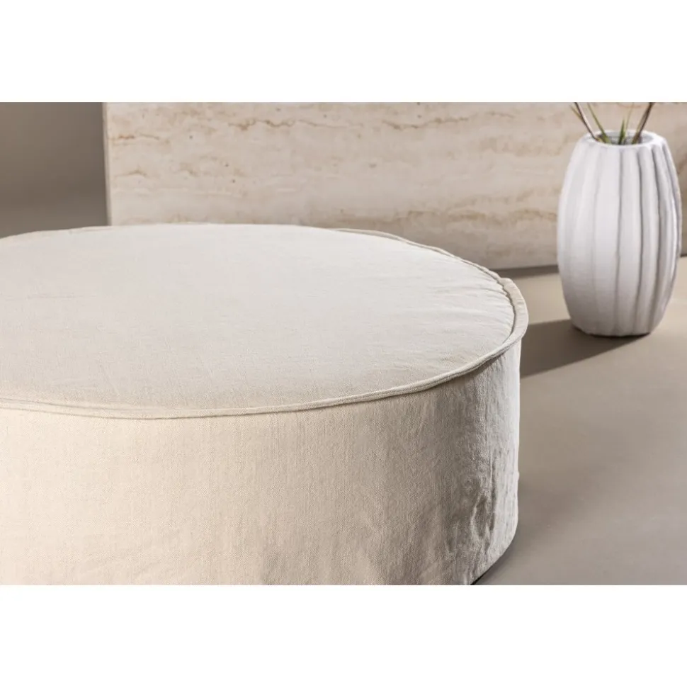 Upptäck elegansen och mångsidigheten hos vår Vindö, en perfekt mix av stil och funktionalitet för ditt moderna hem. Med sin trendiga design och generösa storlek blir den snabbt en favorit i varje rum. Vindö är klädd i en subtil beige nyans, tillverkad av linne som ger en sofistikerad och inbjudande känsla. Den runda formen med en imponerande diameter på 101 cm gör den till en central punkt i ditt vardagsrum, sovrum eller vilket rum som helst där du behöver extra komfort och stil. Dess moderna och trendiga design gör att Vindö sittpuffen passar perfekt i både klassiska och moderna inredningar. Denna möbel är inte bara en bekväm fotpall efter en lång dag, utan fungerar även utmärkt som en extra sittplats när du har gäster. Dessutom är den ett utmärkt val för att ge ditt hem en stilfull och inbjudande atmosfär. Använd Vindö som ett elegant soffbord med en bricka för dina favoritböcker, eller som en mysig plats för dina husdjur att koppla av. Ge ditt hem en touch av komfort och stil med Vindö sittpuff – en möbel som inte bara är praktisk utan också höjer estetiken i ditt hem.