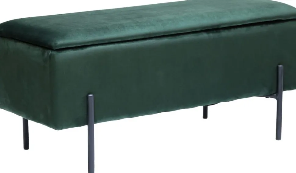 Bänk i grön velour med förvaring.