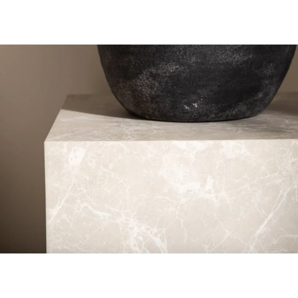 Blockformat i smakfull beige kulör, tillverkat i MDF med spräckligt marmormönster som ger ett läckert liv till helhetsintrycket. Designen är robust och industriell med raka nordiska former och bordets storlek gör att det passar utmärkt både som sidobord intill soffgruppen eller solitär som piedestal. Sätt pricken över i:et och dekorera med en vas i glas eller några ljusstakar så skapar du den perfekta hemtrevliga och trendiga känslan i ditt vardagsrum.