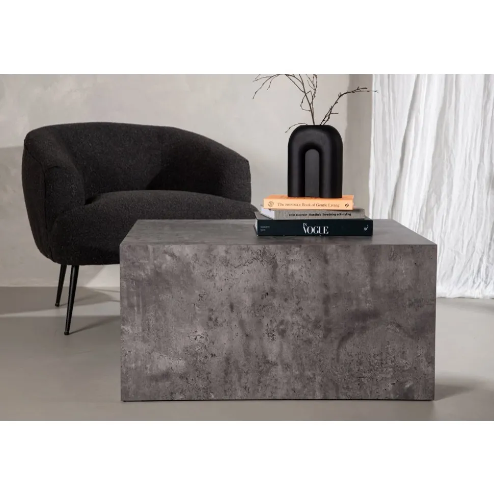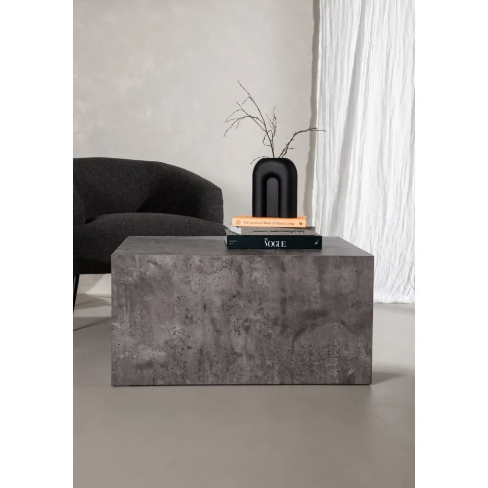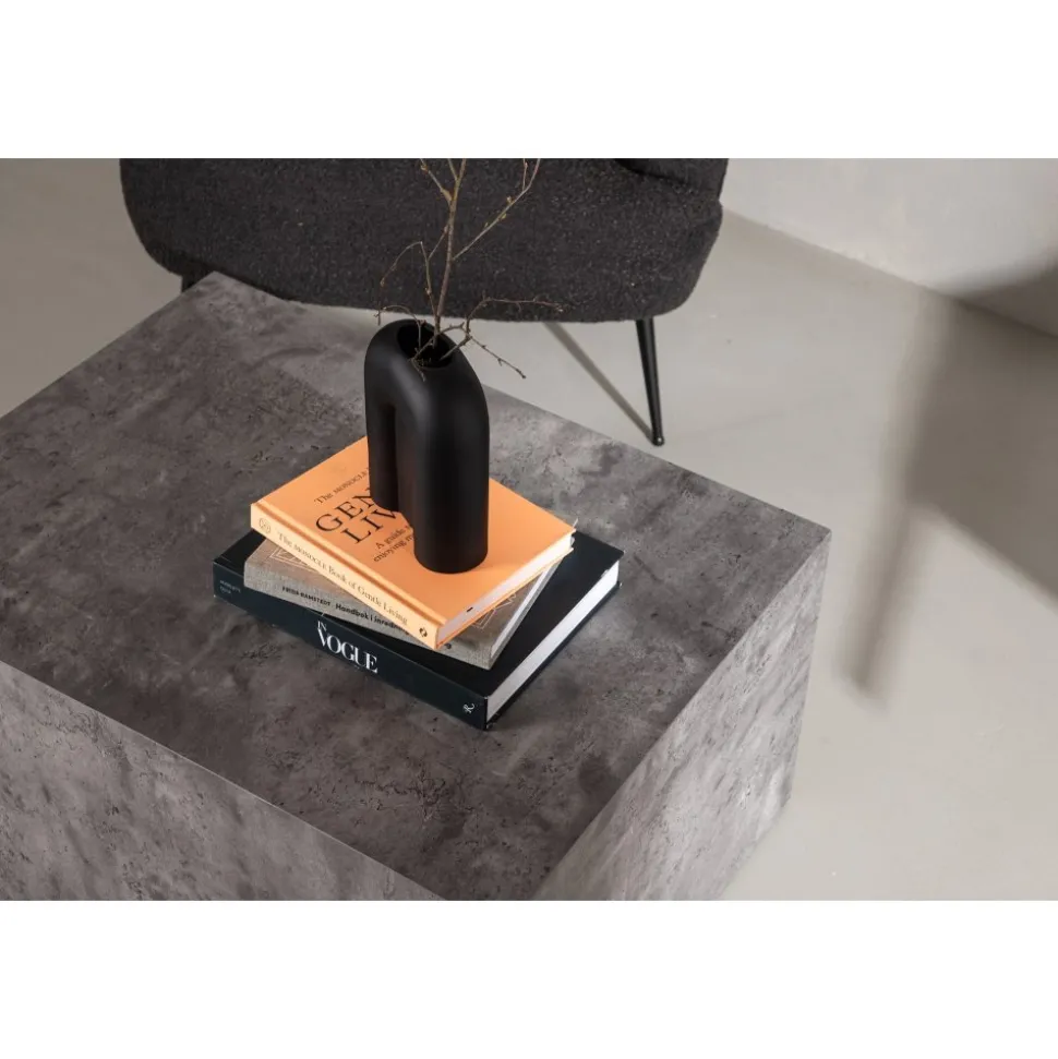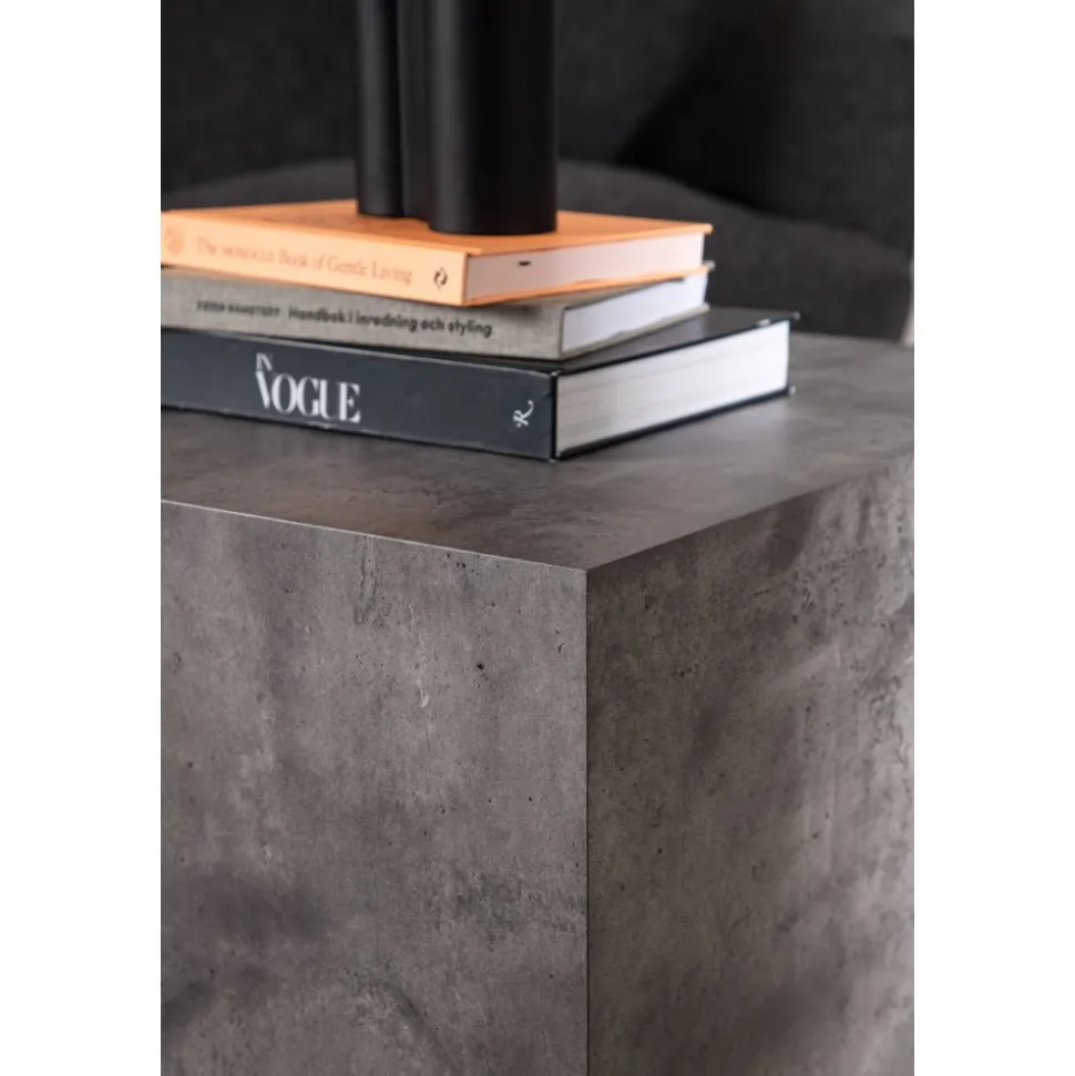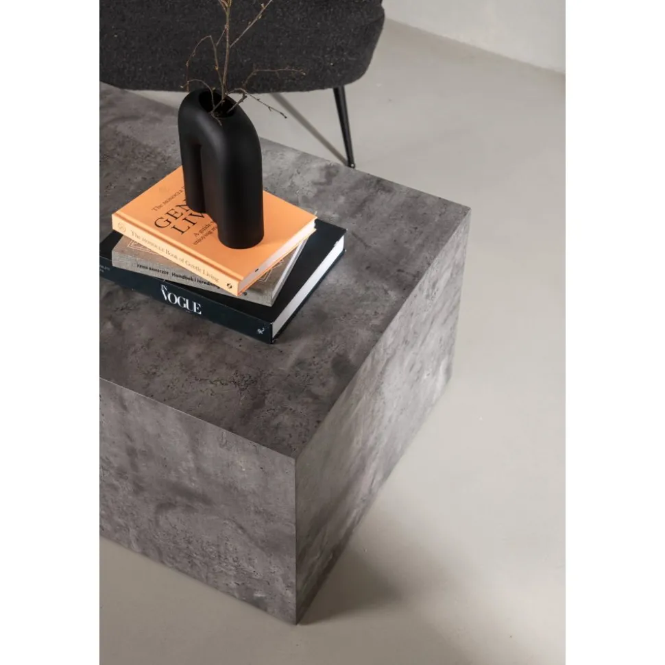 Blockformat i spräcklig mörkgrå kulör, tillverkat i MDF med rörligt marmormönster som ger ett läckert liv till helhetsintrycket. Designen är robust och industriell med raka nordiska former. Sätt pricken över i:et och dekorera med en vas i glas och några ljusstakar så skapar du den perfekta hemtrevliga och trendiga känslan i ditt .